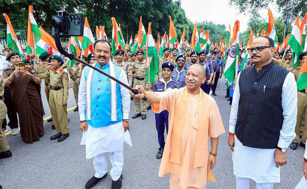मुख्यमंत्री ने मंत्रिमंडल के सहयोगियों व जनप्रतिनिधियों संग हाथ में तिरंगा लेकर ‘भारत मां की जयकार, वंदे मातरम’ की गूंज के साथ यात्रा का नेतृत्व किया। सीएम ने अपने आवास से तिरंगा यात्रा को रवाना भी किया। इसके पूर्व मुख्यमंत्री ने स्कूली बच्चों, एनसीसी कैडेट्स, स्काउट गाइड्स, युवाओं आदि के साथ सेल्फी भी ली। तिरंगा यात्रा को देख लग रहा था कि लखनऊ की सड़कों पर समूचा भारत उमड़ पड़ा है।