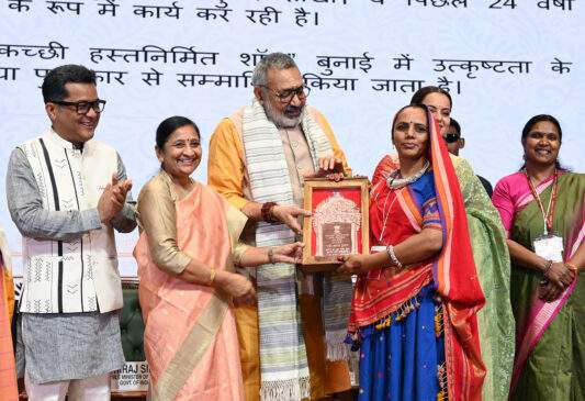 कार्यक्रम के बाद, गणमान्य व्यक्तियों को पुरस्कार विजेता हथकरघा प्रदर्शनियों का अवलोकन कराया गया, जिसमें भारतीय बुनाई की विविध कलात्मकता और क्षेत्रीय समृद्धि का प्रदर्शन किया गया।